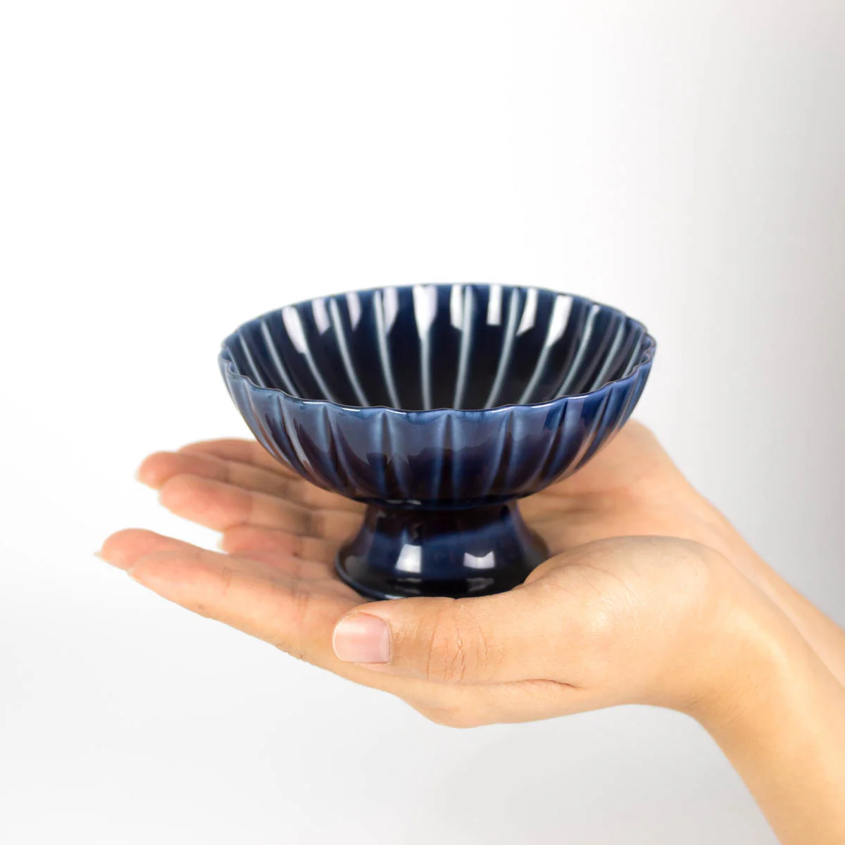 Long admired and internationally renowned traditional Japanese aizome indigo dye is said to develop a deeper hue the more it is used. Giyaman Aizome’s elegant, dark blue coloring is reminiscent of that used by traditional Japanese potters and has been selected for use by many top European fashion houses and master chefs. The chrysanthemum styling and rich coloring of these special dishes provide a wide range of uses for many different occasions.