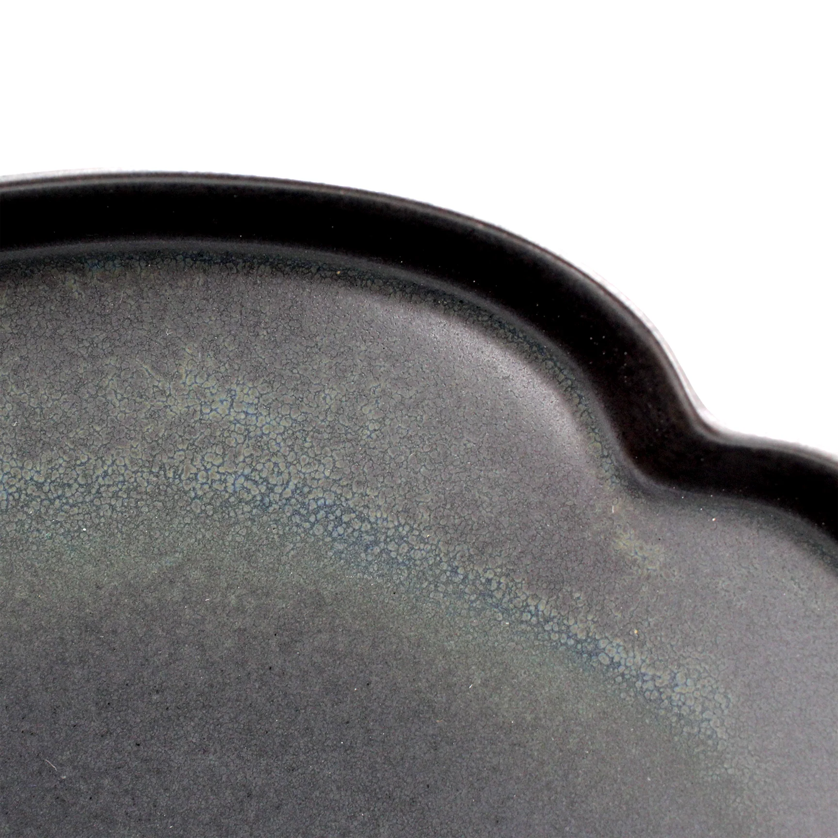 Iron Black Mokko Basin has a dark, earthy glaze with slight variances in tone and color across the entire product. Its design is based on the Mokko (Japanese quince) motif, which is a historic design used for family emblems for hundreds of years. This plate has a flat surface which makes it versatile to use for plating an appetizer to share or as a dinner plate. Each piece has unique characteristics from the minerals used and from the firing process during production.