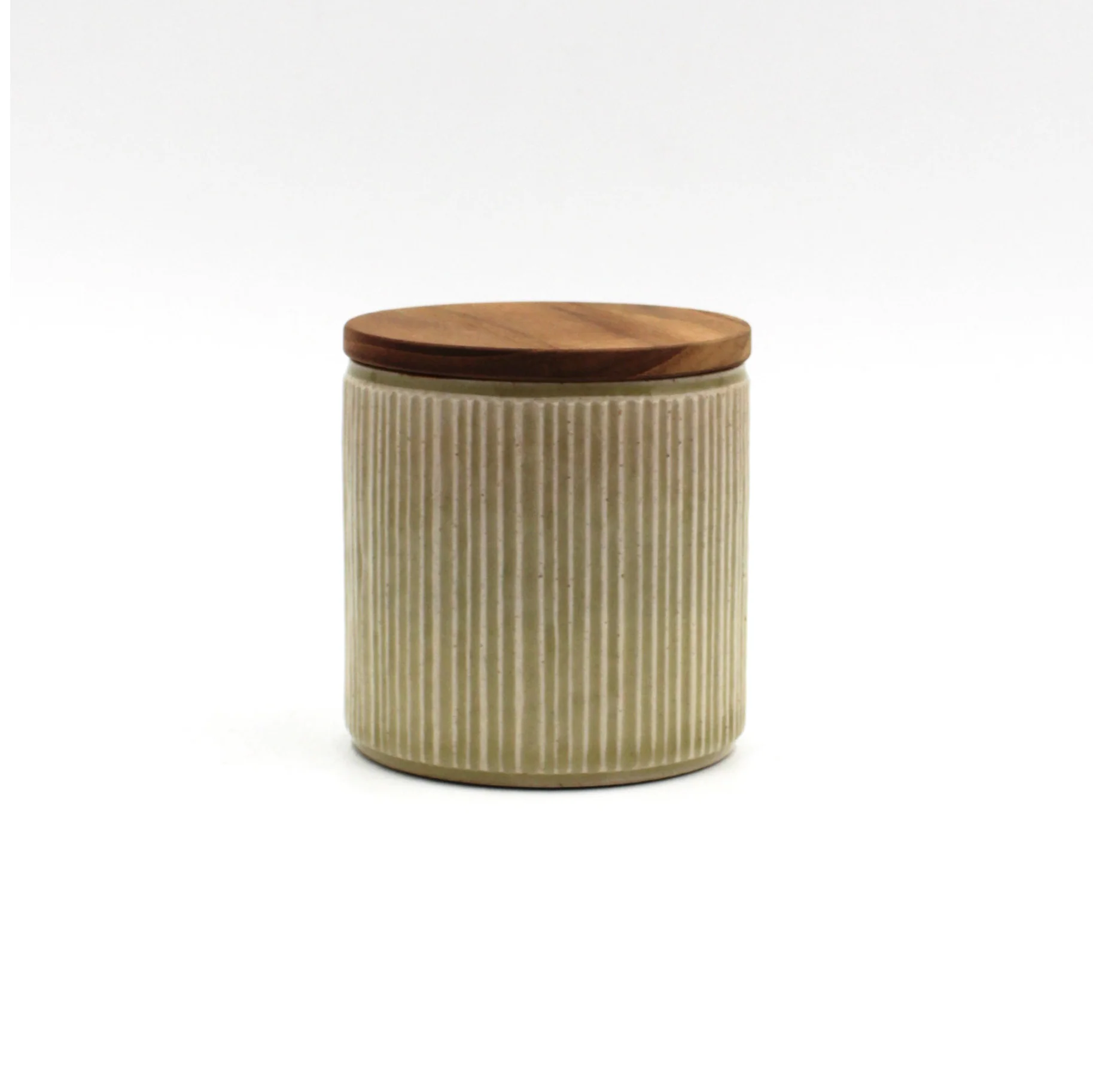 Artisan-Made and Functional - Shinogi Striped Canister with Teak Lid