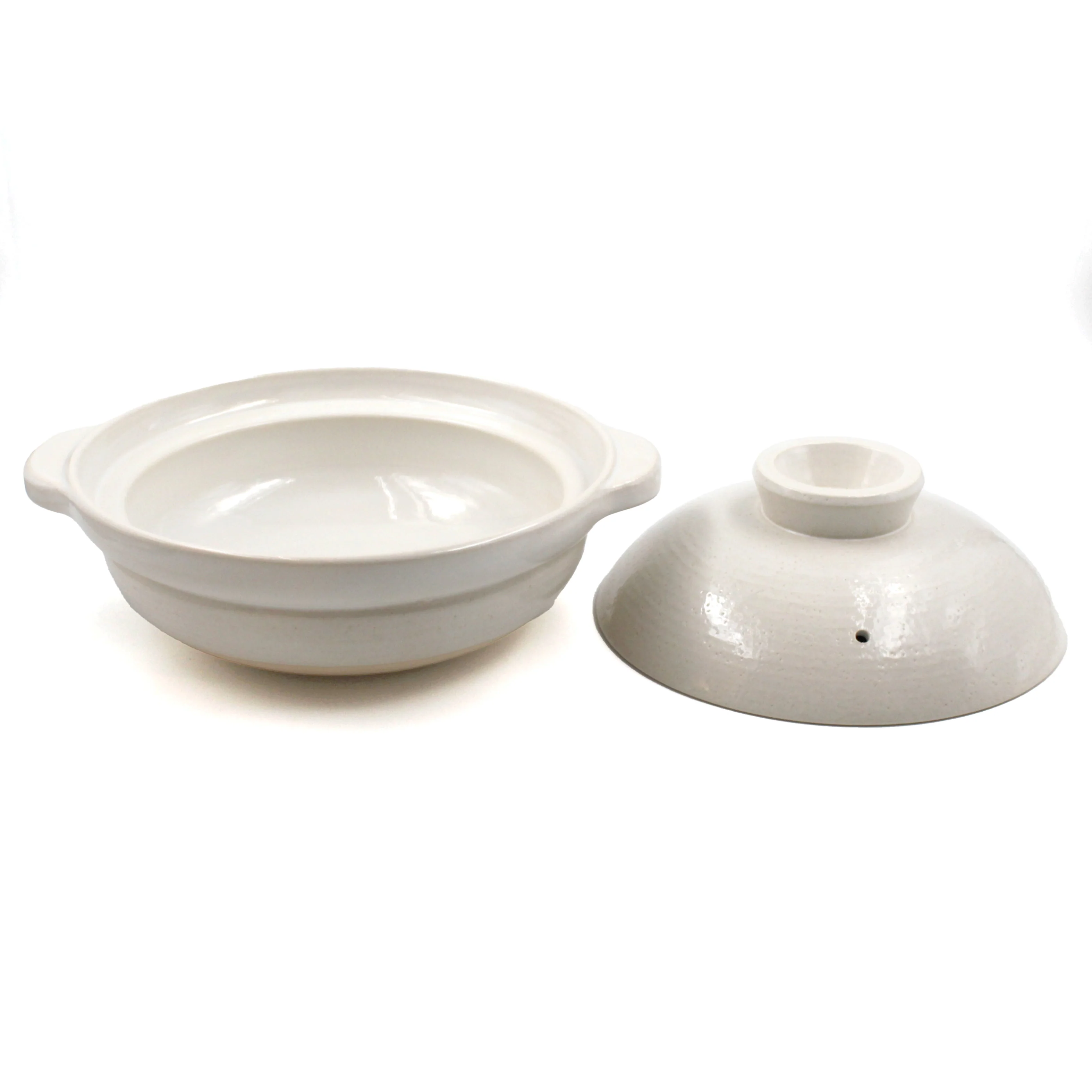 Shiro-yu, or "white glaze" has a sleek design with calming white color. This donabe takes extra steps in the making and the interior of the donabe is fully coated with glaze to the rim. In order to achieve this fully-glazed beautiful look, the pieces are arranged separately, instead of piled on top of each other, to fire in the kiln.